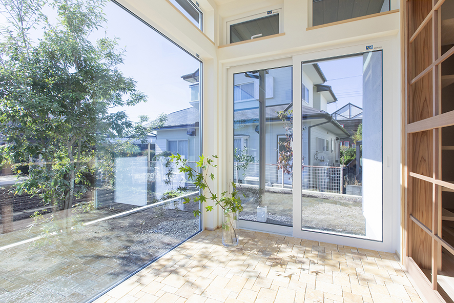 室内のカーテンを極力減らし、目隠し代わりに木を植えるように。