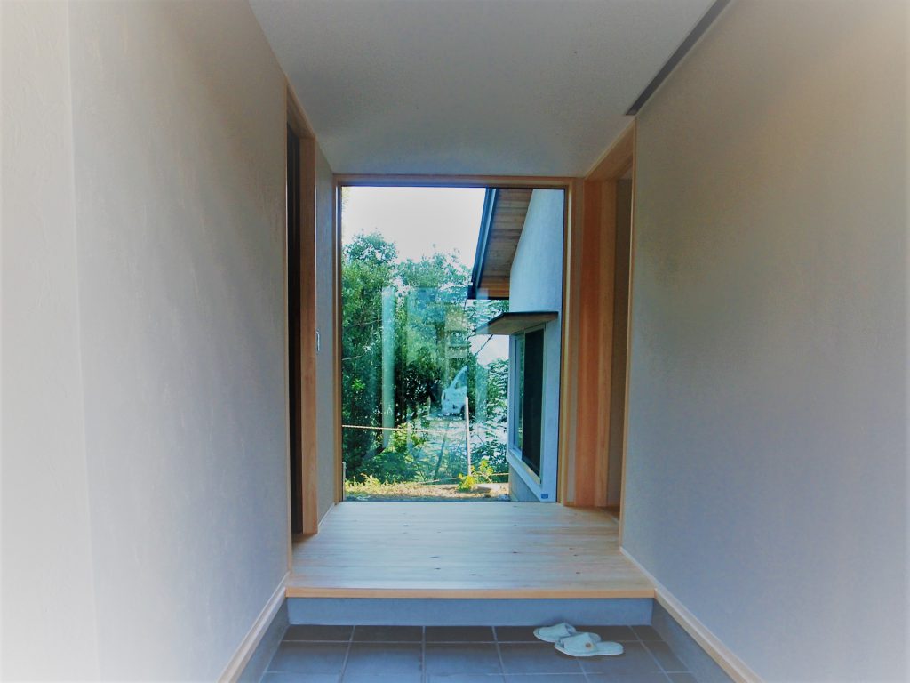 人を向かい入れる玄関、窓一つで広がります。(床から天井までを抜いたことがミソ)