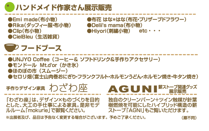 空間工房ロハスのコンセプトでもある「ものづくり、ものがたり」ハンドメイド作家の素材感溢れる作品や、手作りの味わいを愉しむワークショップなど、ロハスのモデルルームで体感しながら楽しむことができるイベントです。
