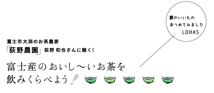 富士市大渕で、化学肥料を極力使用しない循環型農業により、お茶を始め、花の栽培やきのこ、いちごまで幅広く生産出荷している。荻野さんが荒茶とかぶせ茶に注目して製品化された「わたし、甘えんぼ」と「この未熟者!」は富士ブランドに認定されている。