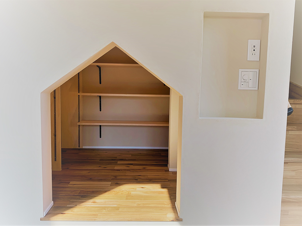 LDKの角にひっそりと。昼間はお子様のお昼寝場所に、寝静まってからはほどよい閉鎖感の書斎スペースに。