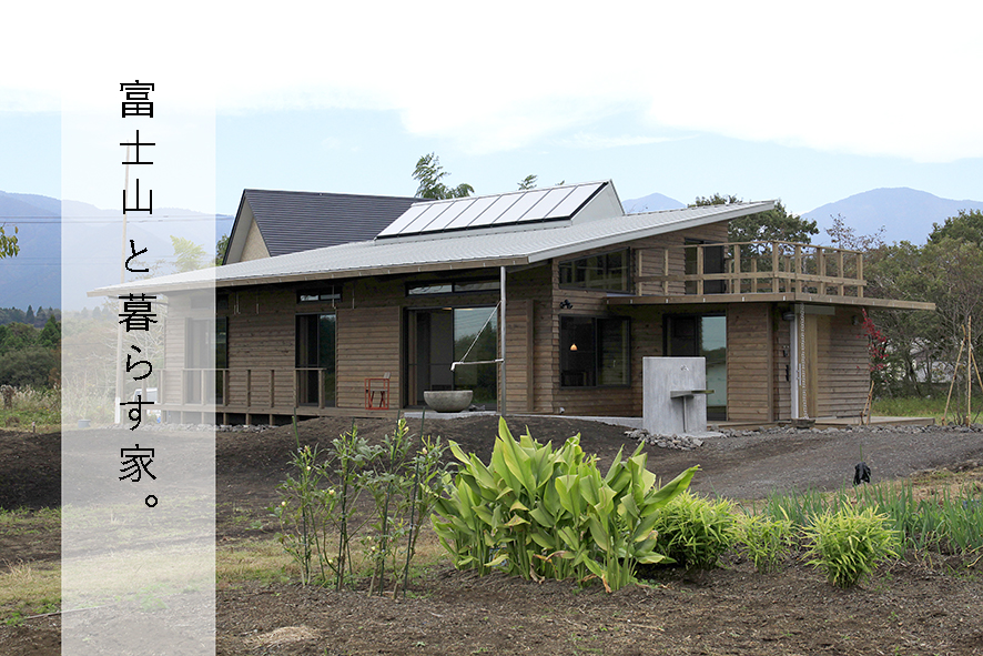 富士宮、朝霧高原のほど近く。富士山も近くに見える高原のそばにまるで昔からその場所にあったような自然な佇まいのロハスの木の家です。OMソーラーで太陽熱を床下に送り、自然エネルギーを活用しながら、家の前の畑やガレージを作って愉しむ暮らしをされています。