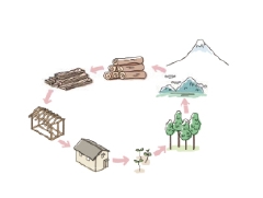 森林認証(SGEC)とは森を持続可能な形で管理していく為の世界的な基準。工場でいうとISOに相当します。空間工房ロハスが所属する「富士山木造住宅協会」と川上、川中の連携で森林認証を取得しています。この材を使うことは、川上の森を健全に守り、ひいては川下の私たちの町を守ることにつながります。