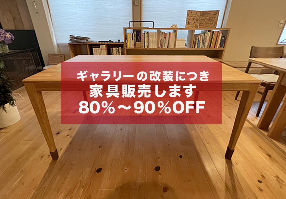 それに伴い、モクリエで今使っている自然素材の家具を80%〜90%オフで
