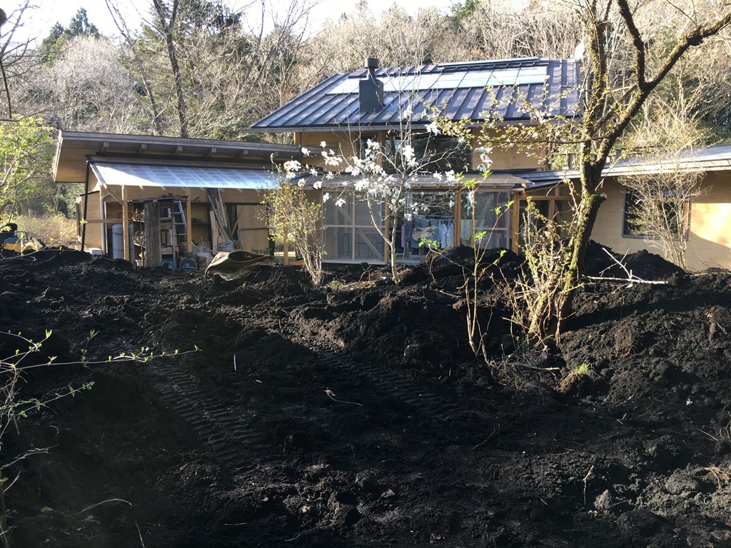 まずは、土工事。 残す樹を移植させて、