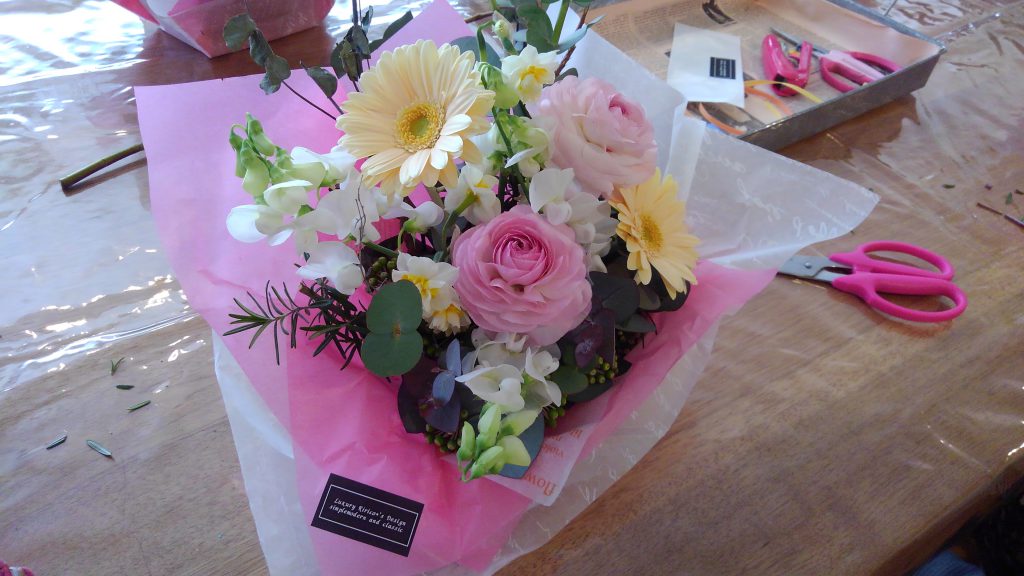 よって、同じ花材を使っているにもかかわらず、皆さんそれぞれのアレンジとなりました。それも楽しかったです。