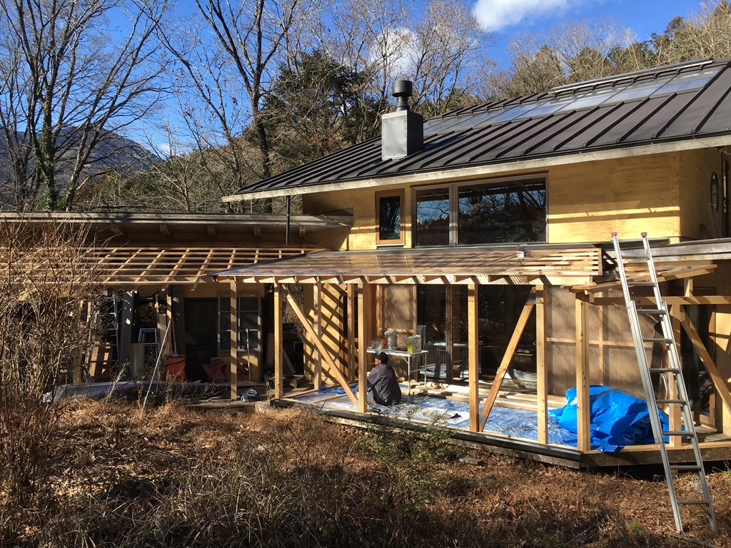 年末にわが家を少しリフォームしました。 住んで10年経って、治したい点や住んでいて気づいた点をできる範囲でやった感じです。 写真は、ウッドデッキの上に屋根を掛けて、リビングの前はガラスで囲ってサンルームにする 工事の様子です。