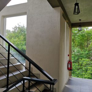 爆睡して、朝外に出てみると期待してなかったのに、外の緑とのつながり感やアイアンの手摺の使い方等、良くできていてびっくりしまた。